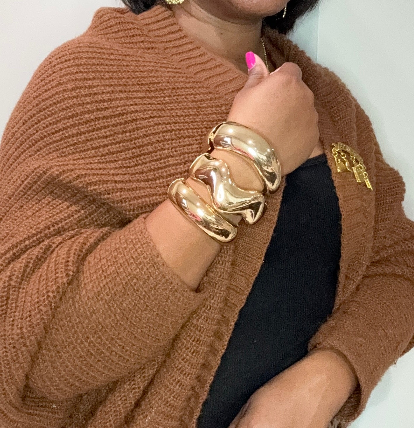 Upgrade your arm candy with this 3pc large chunky bangle set! Fashion accessories bracelets that screams bold and trendy with each uniquely shaped style. There’s nothing uniform about this set.