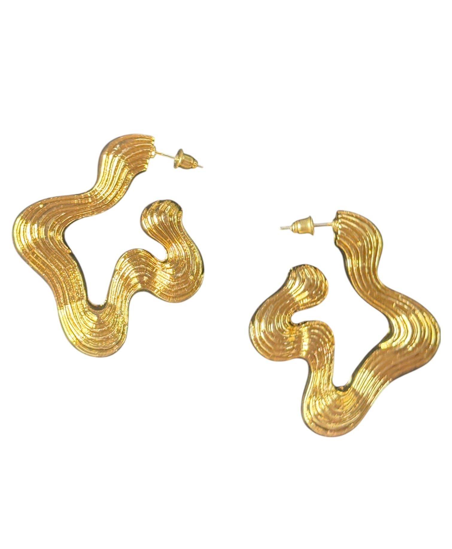 Beautiful contorted earrings that bold in texture and style! Very feminine and elegant hoop-like warring that will spice up any look.
