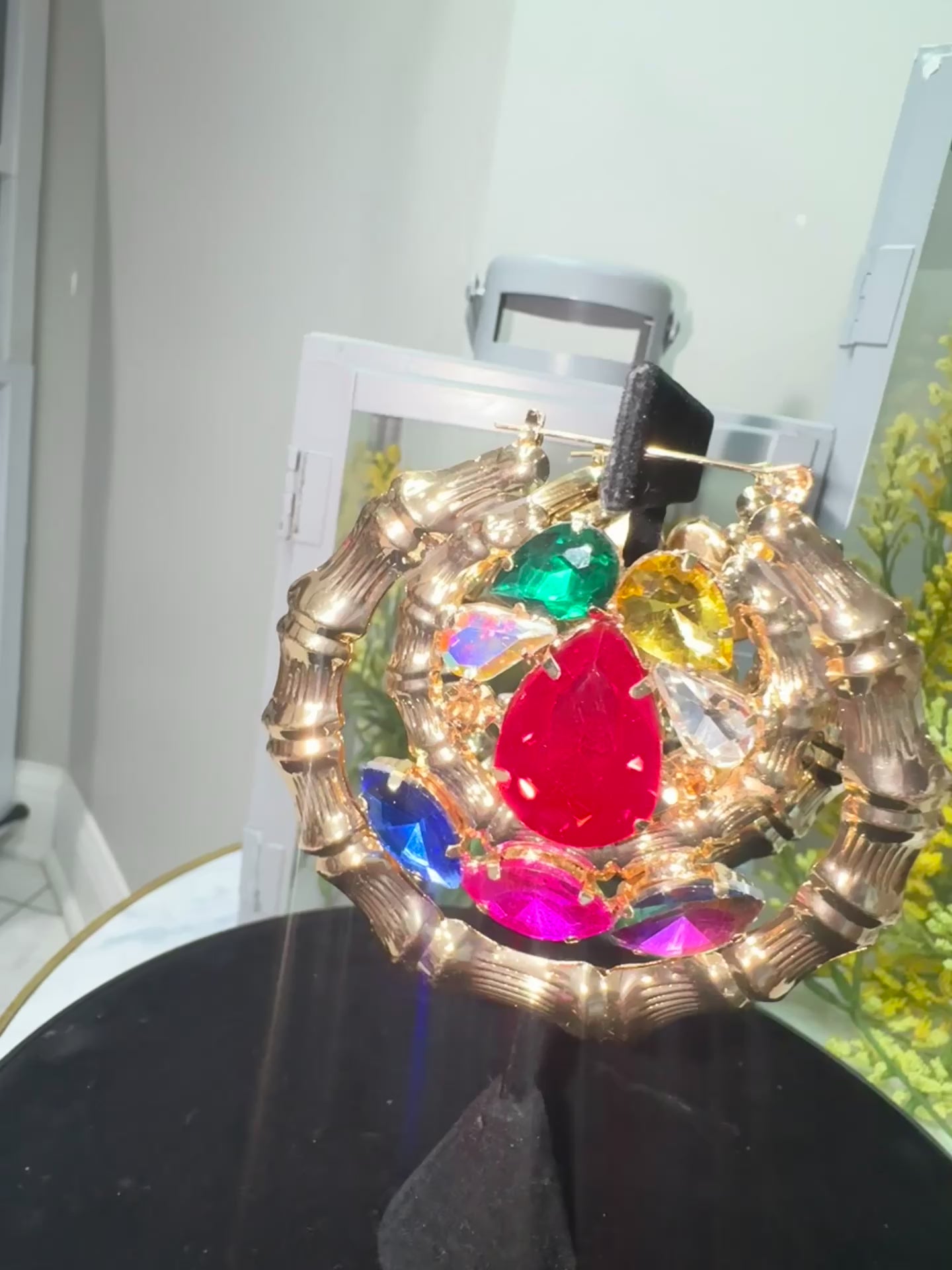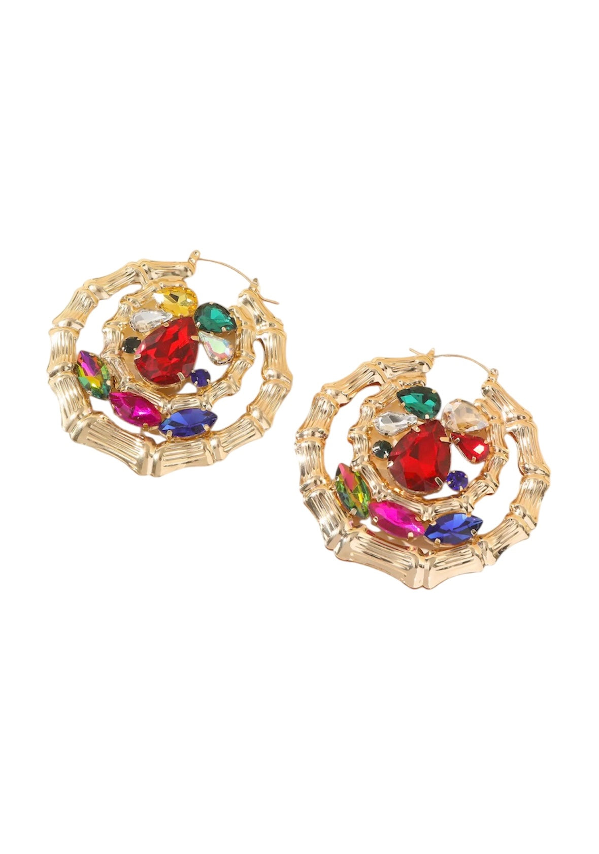 Take it back to the 80s in these Bamboo earrings with multi-colored stones. For the big hoops wearing girlies who are down to show off while jingling baby!